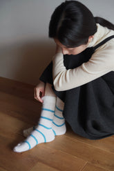 Soft and fluffy kid mohair is blended to create these lightweight yet warm socks. Super soft kid mohair wool is lustrous fiber spun from young goats not more than a year old. Mohair is an extremely soft fiber that is light and incredibly warm. We have carefully blended this fiber with wool to create these lightweight socks that ensure comfort and warmth.